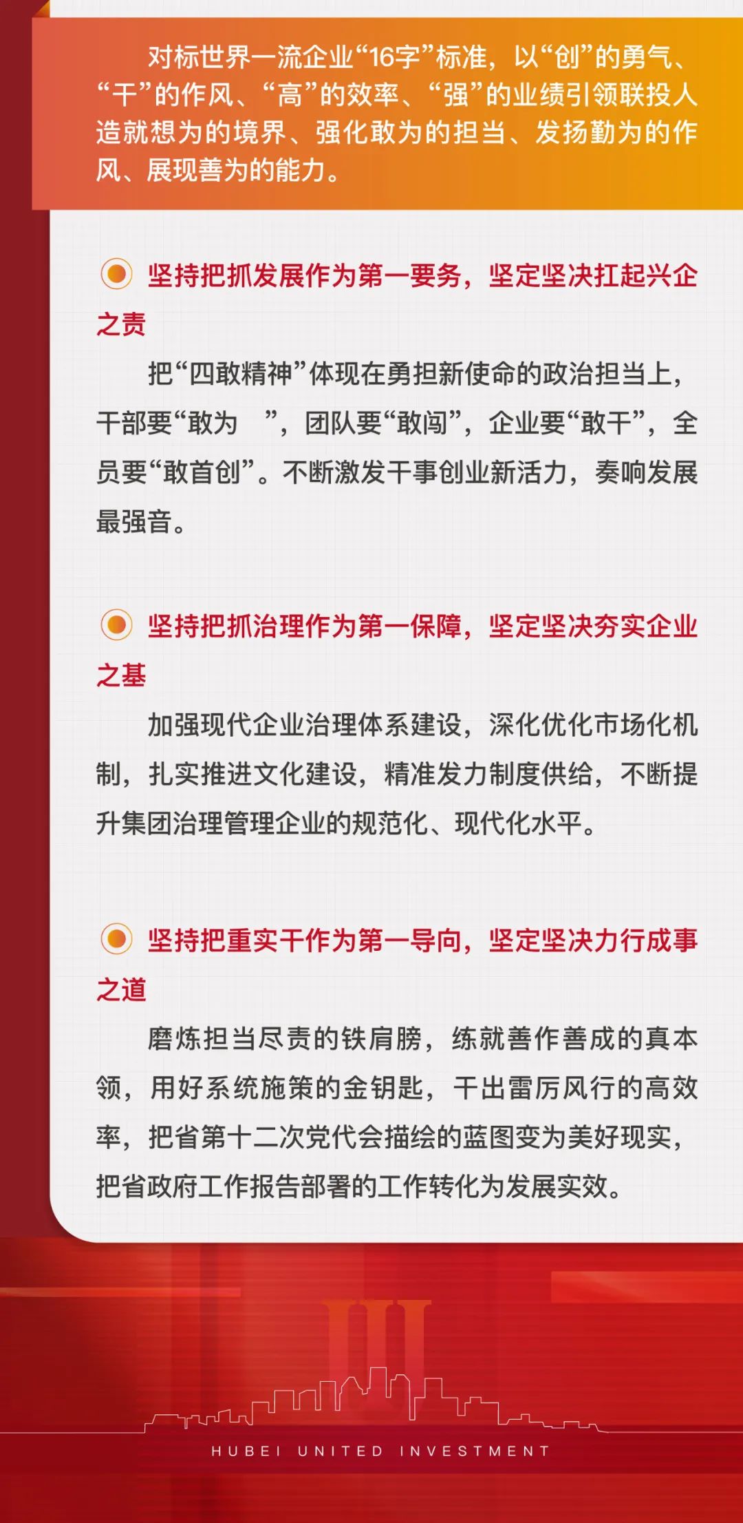 2023年是湖北聯(lián)投建設(shè)世界一流企業(yè)的首戰(zhàn)之年,要以建功“先行區(qū)”的政治自覺和爭(zhēng)當(dāng)“先行軍”的行動(dòng)自覺,奮力開啟聯(lián)投“二次創(chuàng)業(yè)”新征程,譜寫創(chuàng)建一流企業(yè)新篇章!
