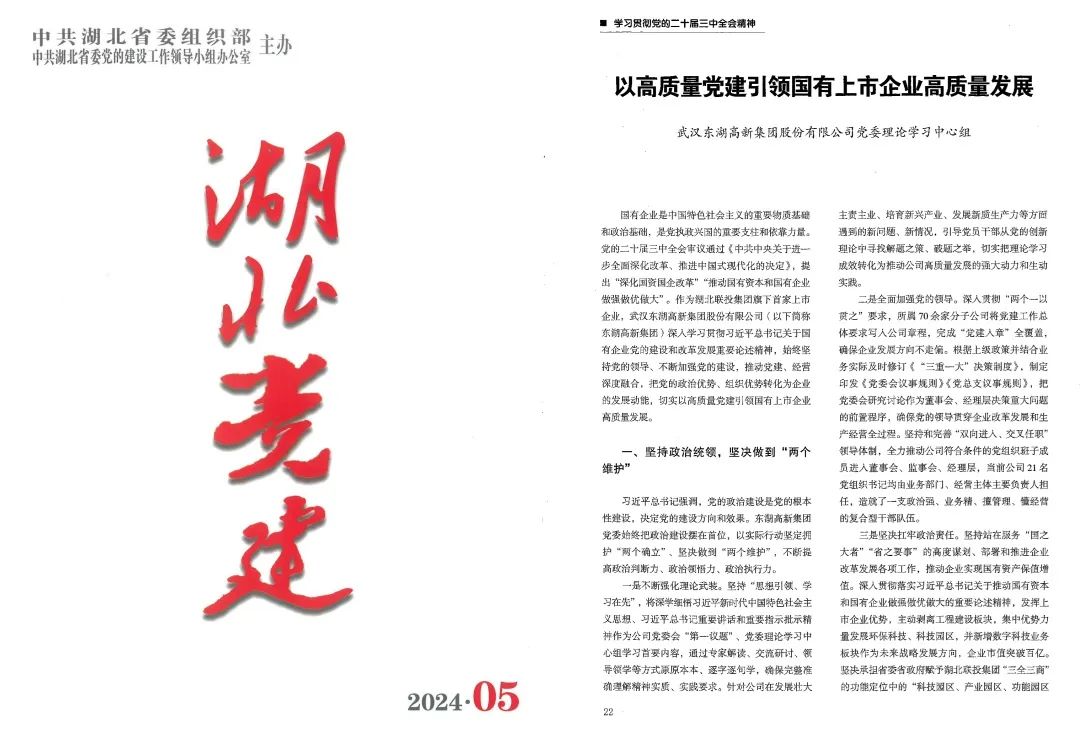 《湖北黨建》:湖北聯(lián)投東湖高新集團(tuán)以高質(zhì)量黨建引領(lǐng)國有上市企業(yè)高質(zhì)量發(fā)展