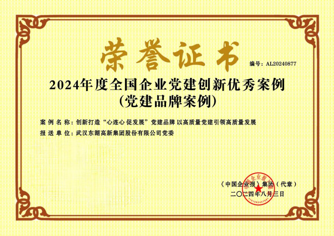 湖北聯(lián)投東湖高新集團(tuán)“心連心 促發(fā)展”黨建品牌榮獲2024年度全國企業(yè)黨建創(chuàng)新優(yōu)秀案例